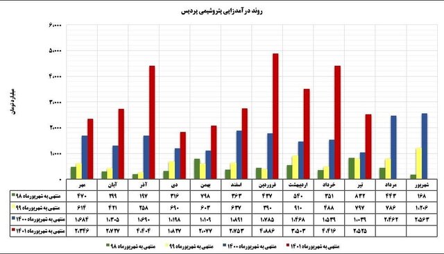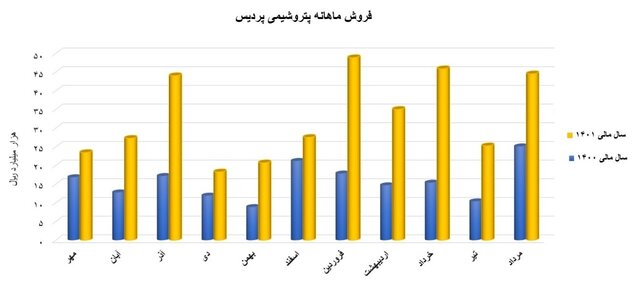 در نمودار زیر روند فروش پتروشیمی پردیس در سال‌های ۹۸ تا ۱۴۰۱ آورده شده است که نشان از تحول اساسی در فروش محصولات دارد.