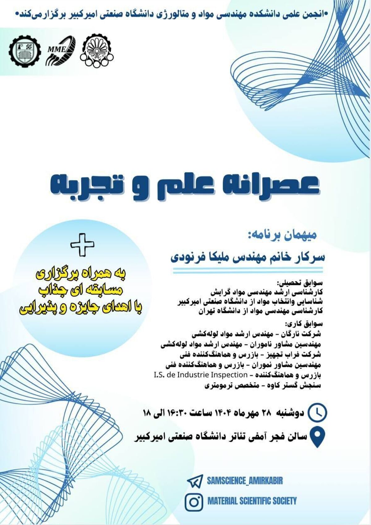 انجمن علمی دانشکده مهندسی مواد و متالورژی دانشگاه صنعتی امیرکبیر برگزار میکند: