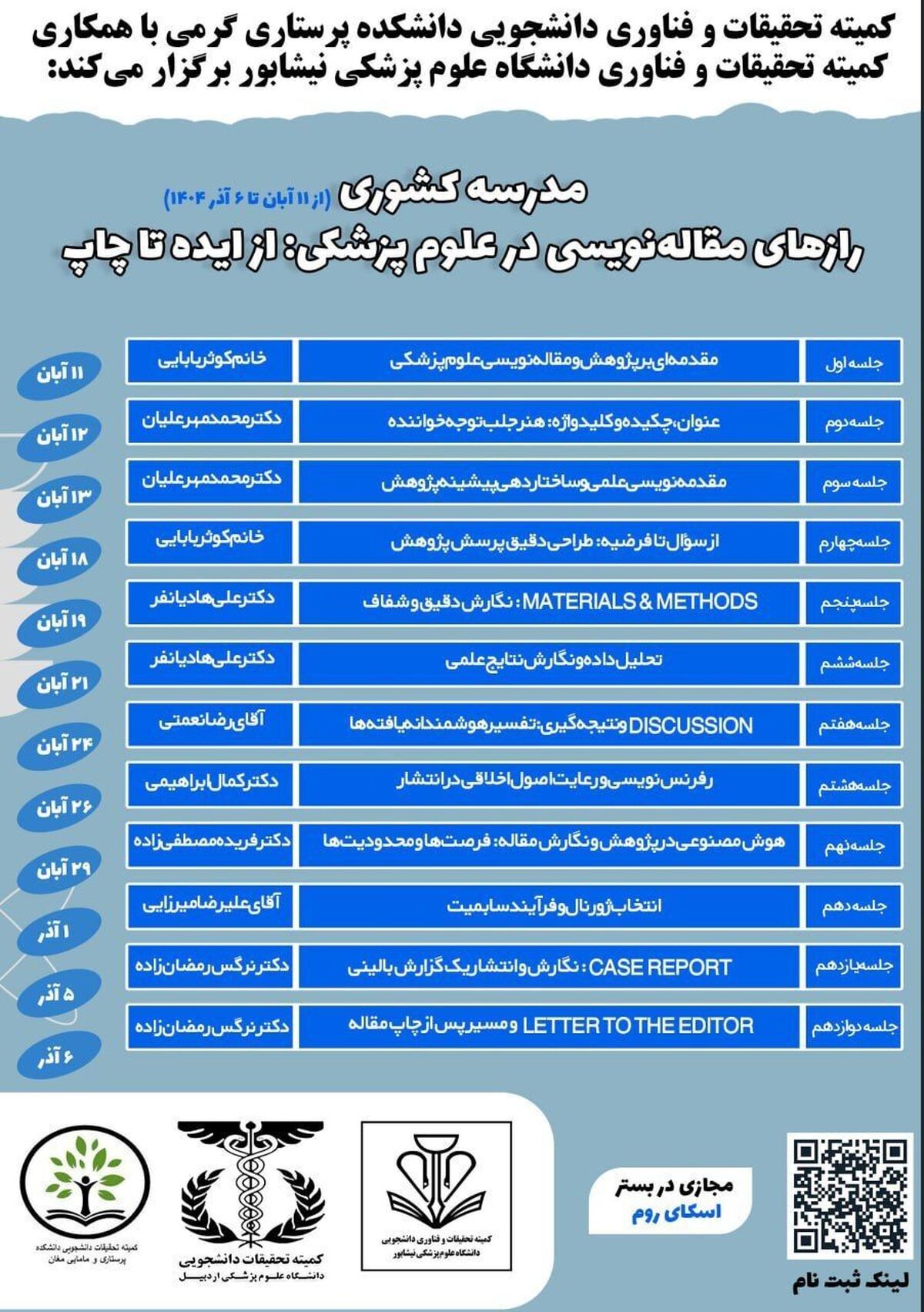 مدرسه کشوری راز‌های مقاله‌نویسی در علوم پزشکی: از ایده تا چاپ