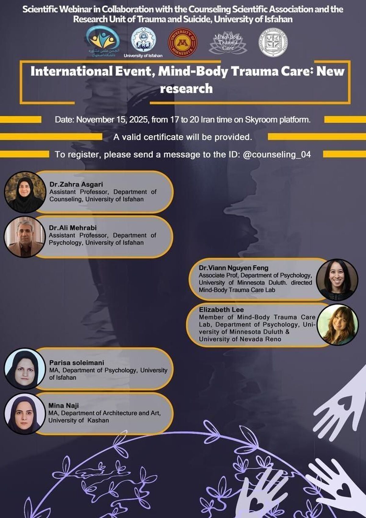 انجمن علمی مشاوره با همکاری واحد پژوهشی تروما و خودکشی دانشگاه اصفهان برگزار می کند: