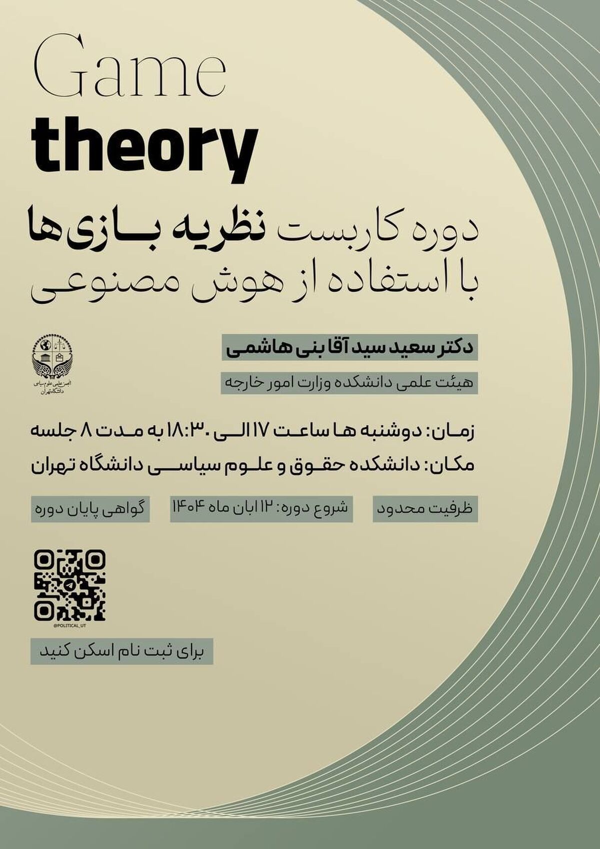 انجمن علمی علوم سیاسی دانشگاه تهران دورهٔ کاربست نظریهٔ بازیها با استفاده از هوش مصنوعی را برگزار میکند.
